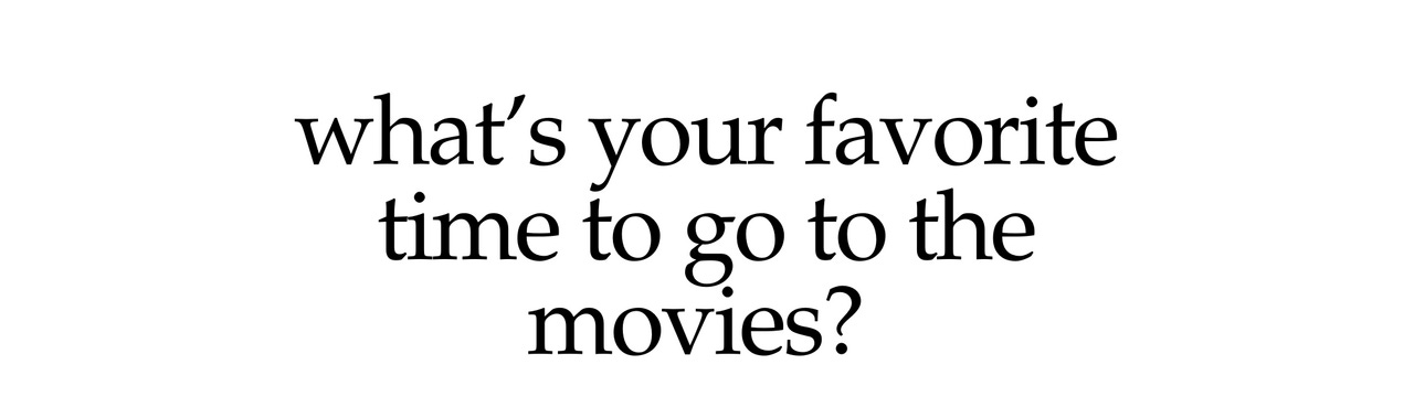 Weekly interviews with people who like to see movies at the movie theater. 11am on a Saturday is my favorite time to go to the movies. What's yours?